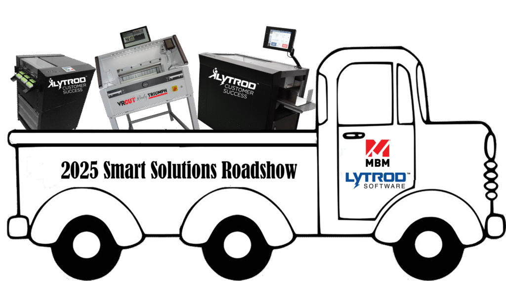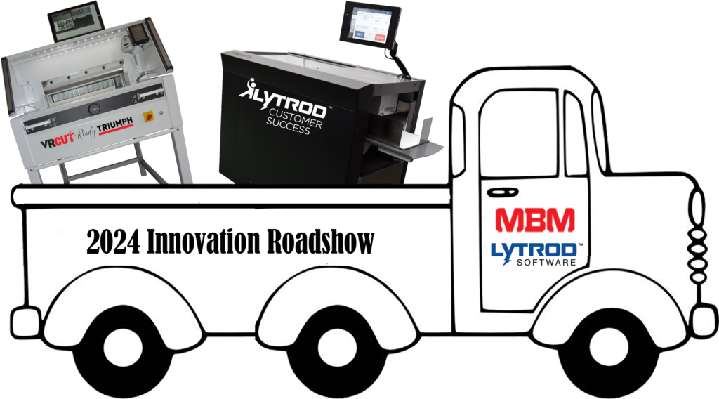 Building on the momentum from previous annual roadshows, MBM and Lytrod Software are set to hit the road running in 2024 to help MBM dealers drive new business opportunities. 2024 is a year of innovation with new products and programs to automate and increase print and finishing workflow productivity. Programs like the Intellicut Print Finishing Success Plan, a customer success enabler bundled with every MBM AeroCut X and X-Pro Slitter/Cutter/Creaser and the VRCut Controller Hardware kit, offers the VRCut Ready Triumph users a free tablet with software and peripherals, providing an automated cutting guidance system for error-free cutting and trimming of jobs. The 2024 MBM and Lytrod Software hardware and software product launches will deliver faster speeds, more capabilities, and automation for a more efficient and effective print and finishing workflow.